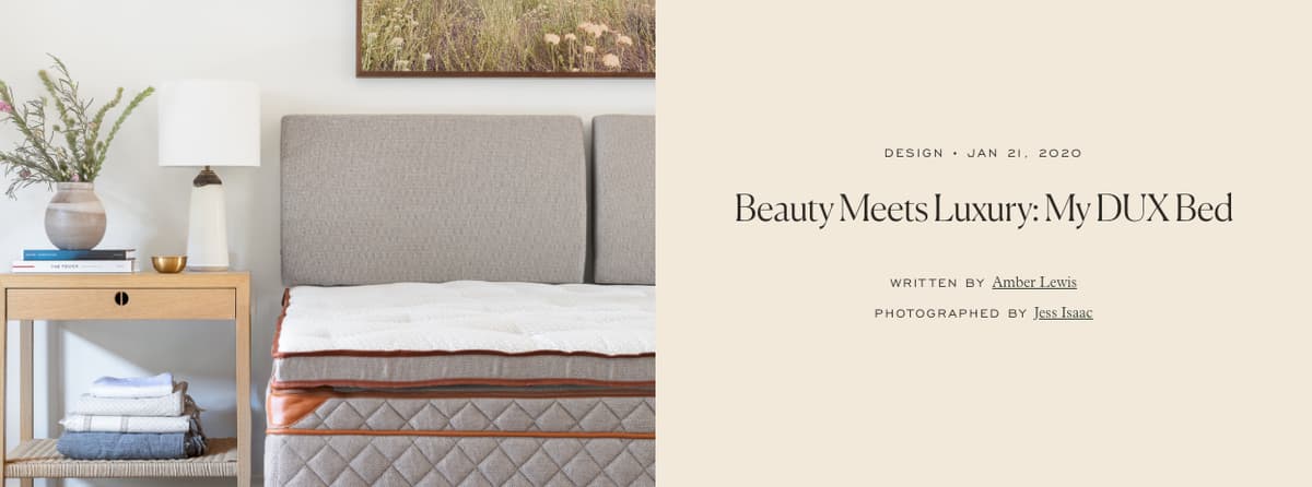 Ευτυχώς για μένα (και για εσάς τώρα!!) Έπεσα πάνω στη σουηδική μάρκα DUX, και ερωτεύτηκα το κρεβάτι DUX. Η Dux είναι μια εμβληματική μάρκα στη Σουηδία που διαθέτει τα προϊόντα της εδώ μέσω των καταστημάτων DUXIANA στις ΗΠΑ και πείστηκα αμέσως μόλις είδα με τα μάτια μου το κρεβάτι.