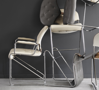 - Τμήμα καθίσματος σε σωλήνες χρωμίου, μαύρο ή πράσινο με ύφασμα στήριξης και δερμάτινη άκρη
