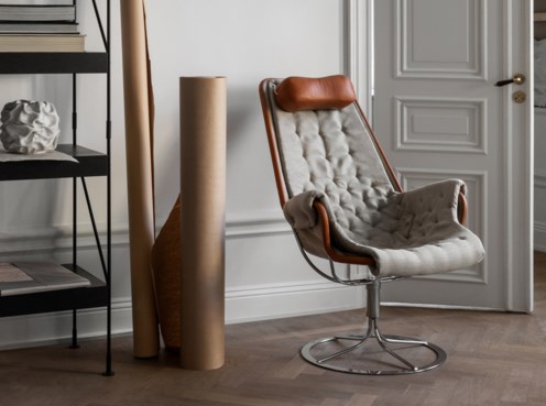 Εμβληματική πολυθρόνα σχεδιασμένη από τον Bruno Mathsson. Η καρέκλα Jetson αντικατοπτρίζει τόσο το πάθος του για άνεση όσο και την κλασική σουηδική προσέγγιση μοντέρνου σχεδιασμού. Διαθέτει κάθισμα sε σχήμα κούπας, εργονομικά σχεδιασμένη ψηλή πλάτη και μαξιλάρι κεφαλής. Επιχρωμιωμένη περιστρεφόμενη βάση με μοναδικό μηχανισμό αυτόματης επιστροφής.
