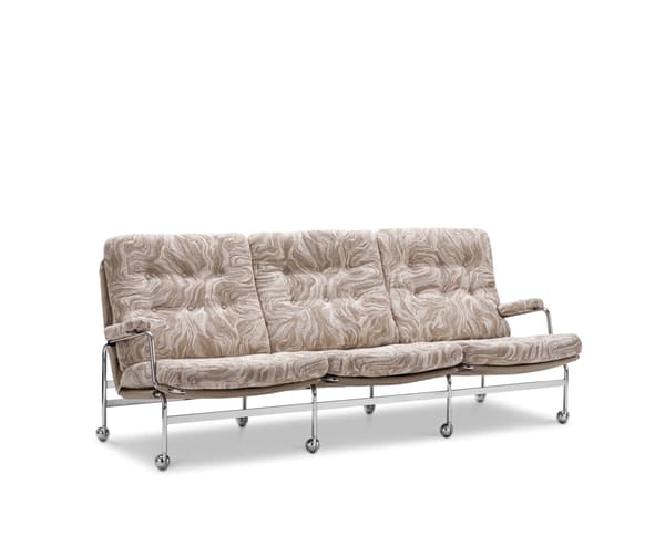Αυτός ο κομψός τριθέσιος καναπές συνοδεύει τέλεια την αρχική πολυθρόνα Karin, σχεδιασμένη από τον Bruno Mathsson το 1969. Βασίζεται στην κλασική συλλογή, με άνετα και ενισχυμένα μαξιλάρια που ακουμπούν σε επιχρωμιωμένο σκελετό με υποστηρικτικό ιστό. Εκτός από τους καναπέδες και την αρχική καρέκλα, η σειρά Karin περιλαμβάνει επίσης υποπόδιο και τραπέζια διαθέσιμα σε πολλά μεγέθη.