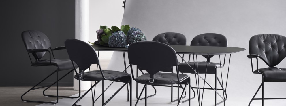 Οβάλ τραπεζαρία που ενθαρρύνει τη συζήτηση και την οπτική επαφή με όλους τους καλεσμένους. Διατίθεται επίσης σε δύο ακόμα εκδοχές, μια τραπεζαρία με δύο επεκτάσιμες επιφάνειες και μικρότερο μέγεθος τραπεζιού café.