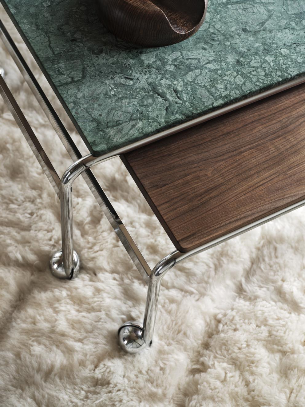 Ένα τραπέζι με το κλασικό σχέδιο Karin, σχεδιασμένο για εύκολη μετακίνηση.