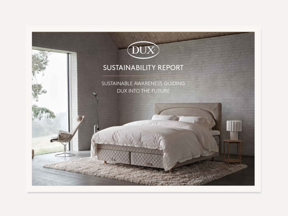 Ο πρωτοποριακός σχεδιασμός του κρεβατιού DUX αποτελείται από προσαρμόσιμα εξαρτήματα. Είναι αντικαταστάσιμα και μερικά ακόμη και αναβαθμίσιμα. Η ιδέα πίσω από τον ανανεώσιμο σχεδιασμό είναι ότι το κρεβάτι DUX μπορεί να είναι το τελευταίο κρεβάτι που θα χρειαστείτε ποτέ. Τα υψηλής ποιότητας υλικά, σε συνδυασμό με την κληρονομιά των 95 ετών στη σουηδική δεξιοτεχνία, έχουν ως αποτέλεσμα ένα κρεβάτι που κατασκευάστηκε για να αντέχει στον χρόνο. Για να το θέσουμε απλά, όσο περισσότερο αντέχει, τόσο λιγότερα κρεβάτια καταλήγουν σε χωματερές.